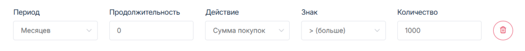 Период — рассчитывается в днях или месяцах. Если период выбран месяц, то условия проверяются 1-го числа каждого месяца в 00. Если период выбран день, то настройки проверяются в 00 часов каждого дня.;