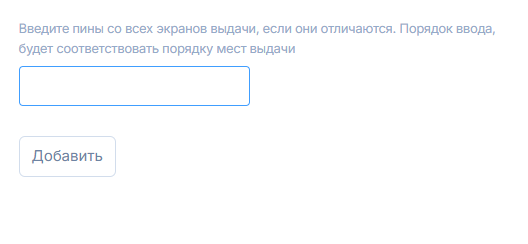 Введите пины со всех экранов Умной выдачи. Они отобразятся при первом включении на каждом экране. Вносите их по порядку начиная от первых центральных — первые заказы будут в распределяться на первые экраны по счету. В дальнейшем изменить порядок можно только полной перепривязкой устройства.