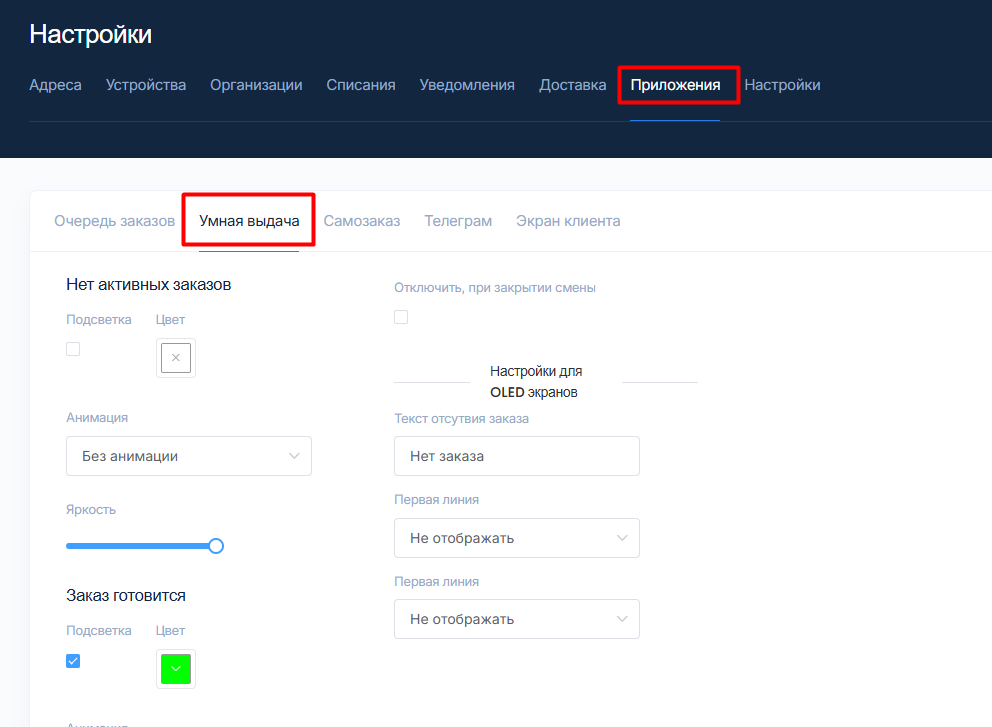 Настройки раздела «Заказ готовится»