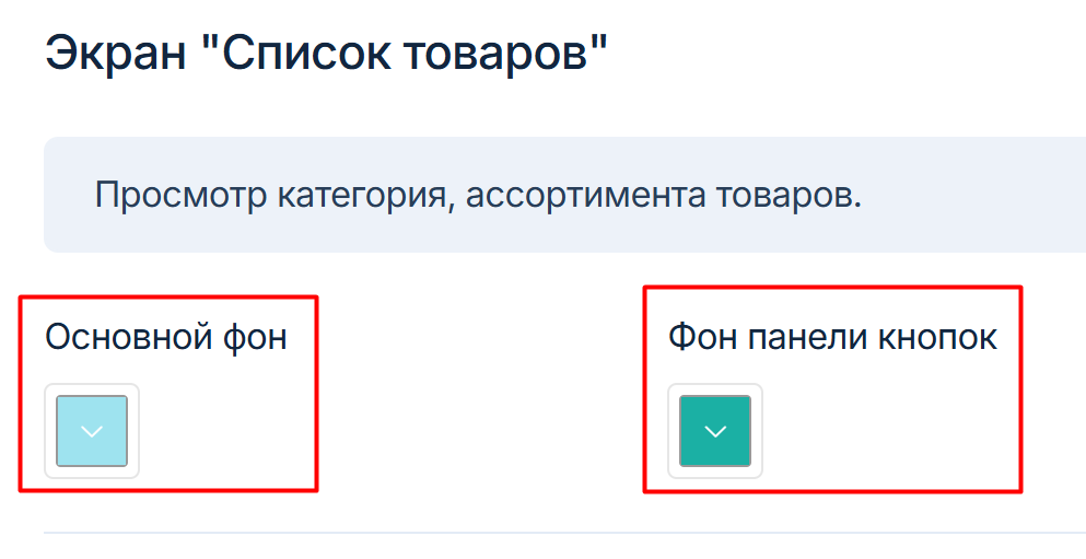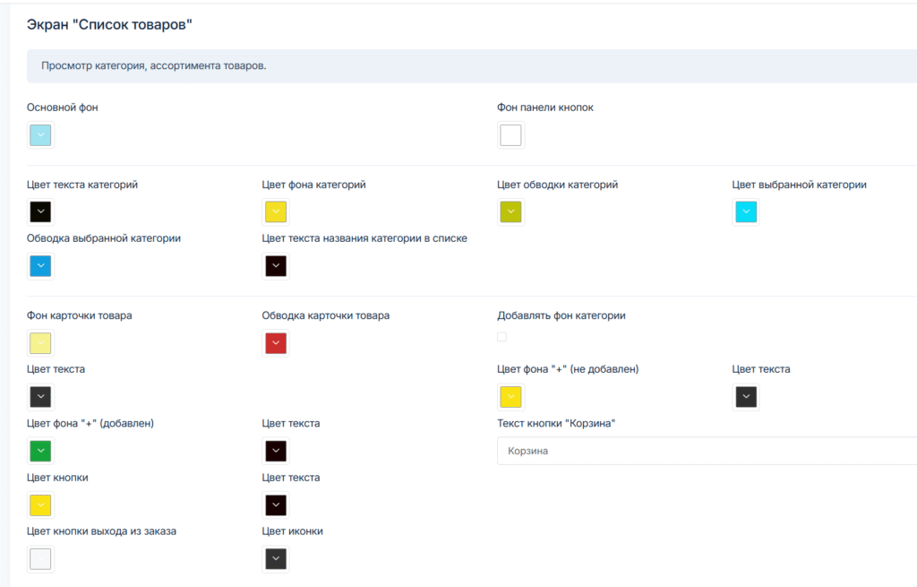 - Цвет окна с товаром — цвет фона экрана добавления товара в заказ;