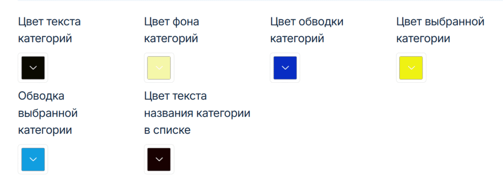 - Цвет текста категорий — цвет текста, которым написаны названия категорий;