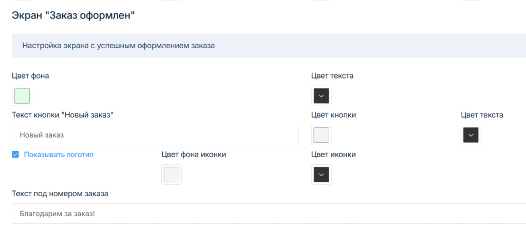 - Цвет кнопки и цвет текста — цвет заливки кнопки Новый заказа и цвет текста, который на ней размещен;