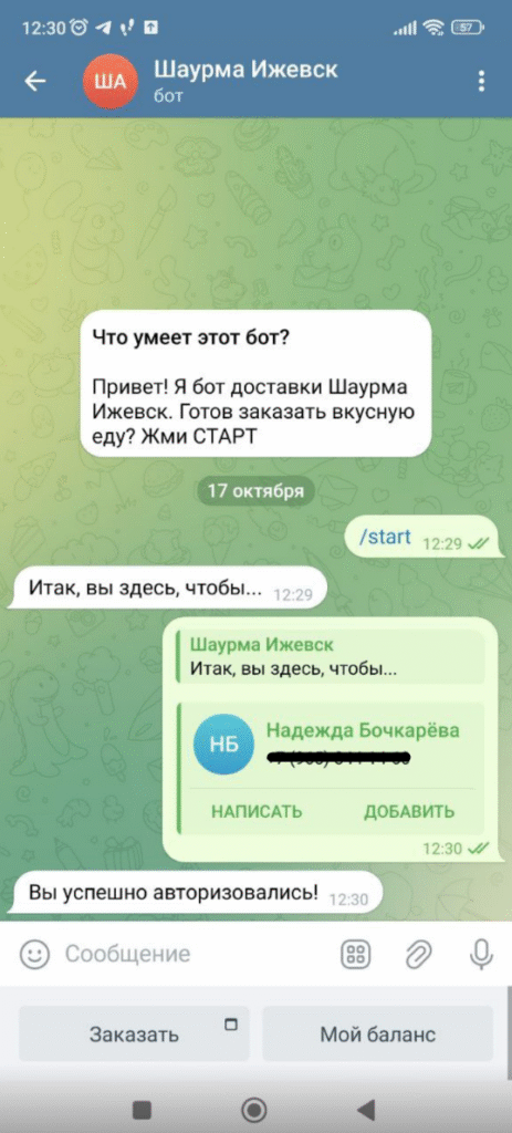 Для авторизации, кликните кнопку Авторизоваться и поделитесь своим контактом.